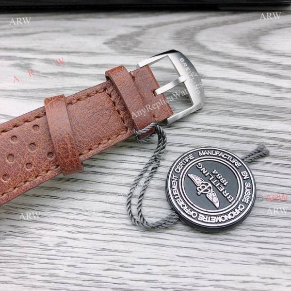 Bracelet: Brown Leather Strap with Breitling Logo on Buckle
