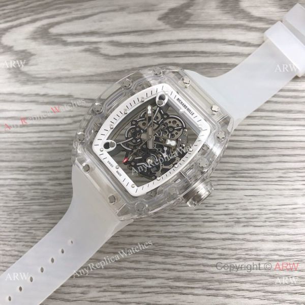 Transparent Case White Rubber Bracelet Skeleton Dial Richard Mille Watch