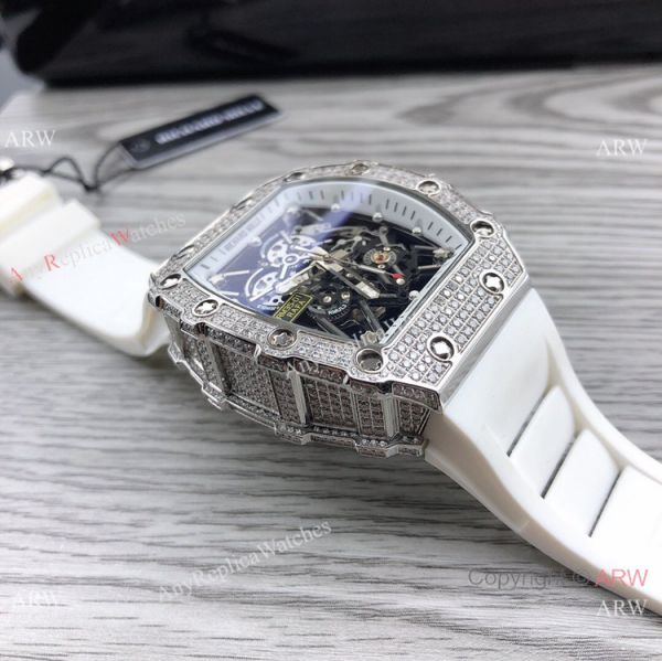 316L Stainless steel Diamond Case Red Rubber Bracelet Skeleton Dial Richard Mille Watch