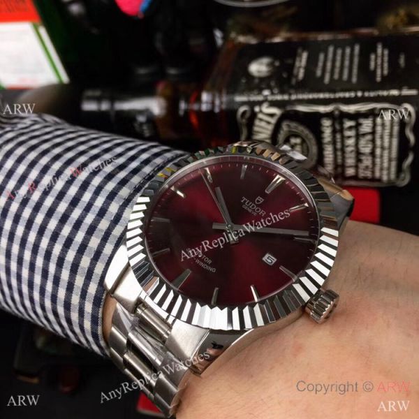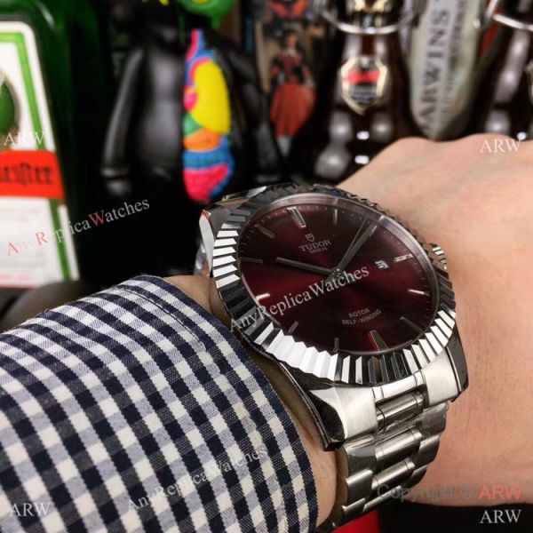 316L Stainless Steel Case Cherry red Dial Fluted Bezel Tudor Fake Watches