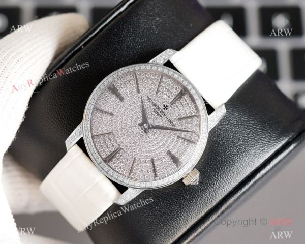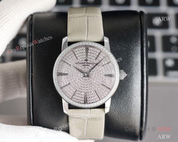 NEW! Swiss Grade Copy Vacheron Constantin Traditionnelle Ultra-Thin 33mm Watch Iced Out Silver
