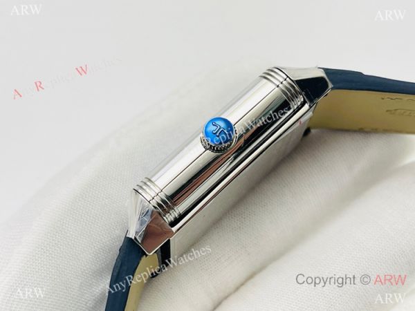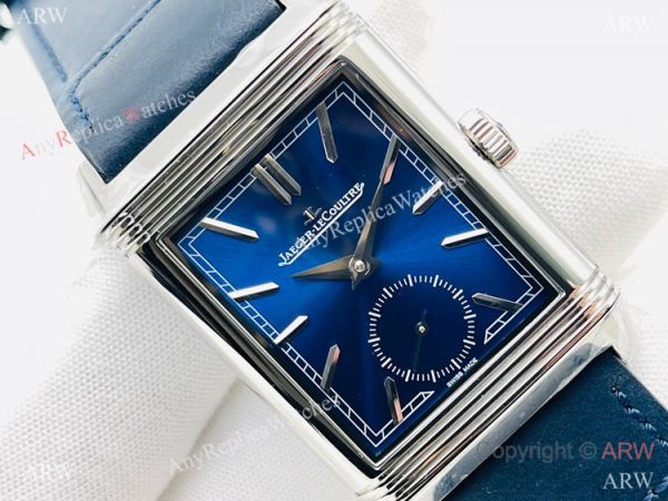 Size: 49 x 29mm Jaeger Lecoultre Watch for men Instruction Note: Double-Dial dual time zone, first gear adjusts the time on the white dial, second gear adjusts the time on the blue dial, no effect on each other. Second hand sub-dail on the blue dial, 24-hour sub-dail on the white dial, hand-wound movement, each full spring can be used for 24~36 hours, full chain stuck means the spring is full, please do not continue to wind it to avoid bursting. Flip to the right, left to right to reset.