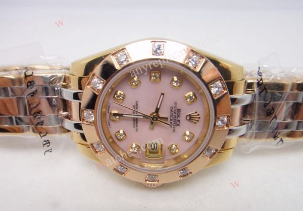 This Is A Beautiful Replica Rolex Pearlmaster Tripple Tone Pink Mother-Of-Pearl Dial Ladies Watch