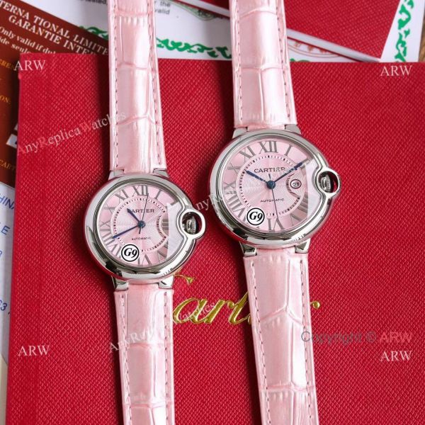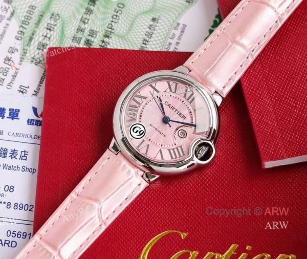Copy Balloon Blue Cartier Wave Pink Dial V6 Watch with Pink Leather Strap