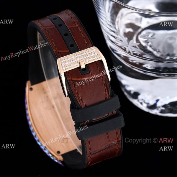316L Stainless steel Iced Out Case Black Gummy Strap Diamond face