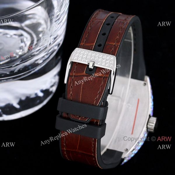 316L Stainless steel Iced Out Case Brown Gummy Strap Black face Franck Muller Yachting watch