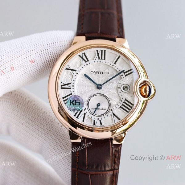 Swiss Quality Cartier Ballon Bleu 42mm Watch Yellow Gold Leather Strap
