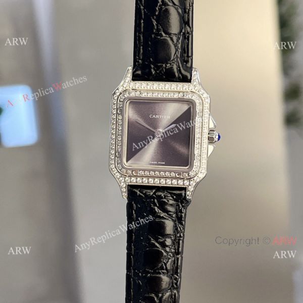 316L Stainless steel Diamond Case Gray Onyx Face Cartier Iced Cartier Watch