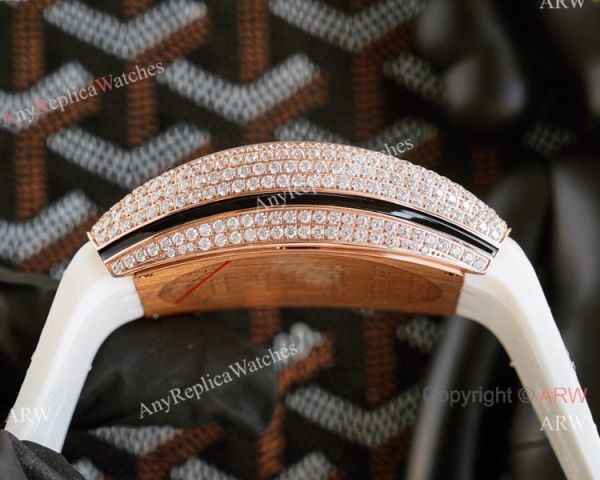 Copy Franck Muller Vanguard v45 Iced Out Rose Gold Watch Automatic