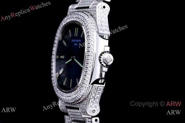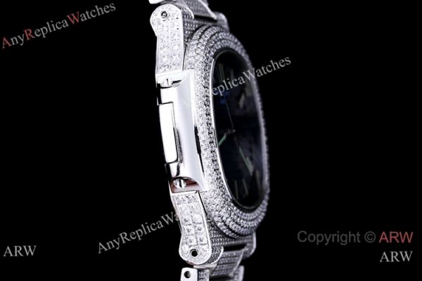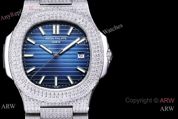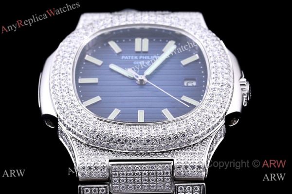 Luxury Replica Patek Philippe Nautilus Iced Out Watch Blue Dial Stainless steel