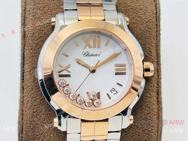 YF Factory Copy Chopard Happy Sport 7 Diamond Quartz 36mm Watch Two Tone Rose Gold