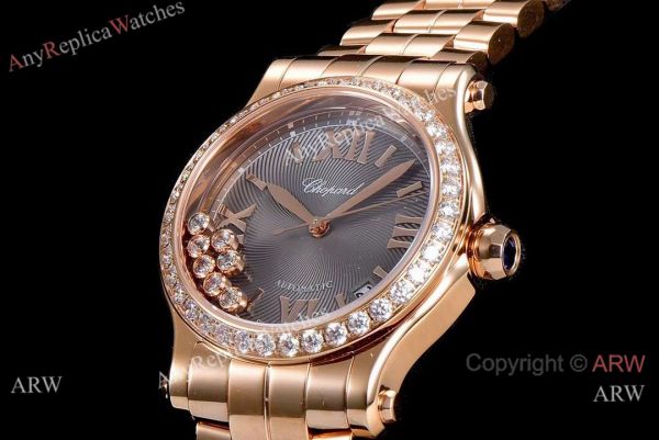 Super Clone Chopard Happy Sport Diamonds YF Factory Watch w/ 7 Floating Diamonds
