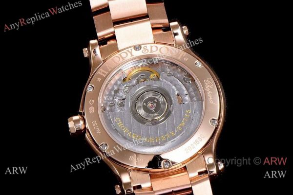 Swiss Grade 1 Copy Chopard Happy Sport Watch YF Factory 2892-2 Rose Gold Gray Dial