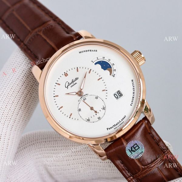 Swiss Replica Glashutte Original PanoMaticLunar Watch Rose Gold Case
