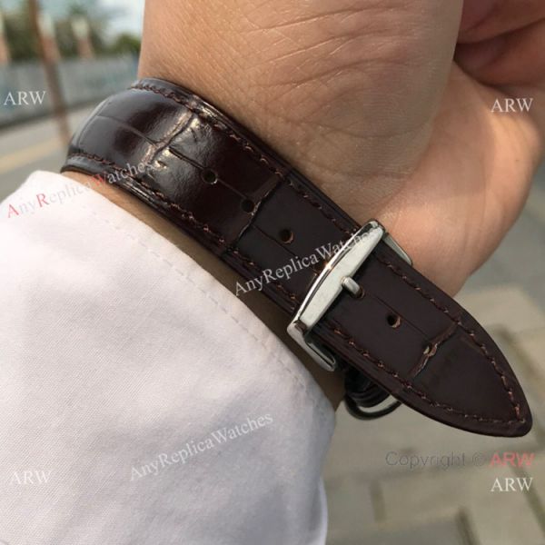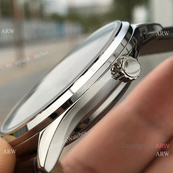 316L Stainless steel Case and Brown Leather Bracelet Silver Dial Watch