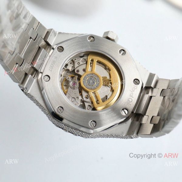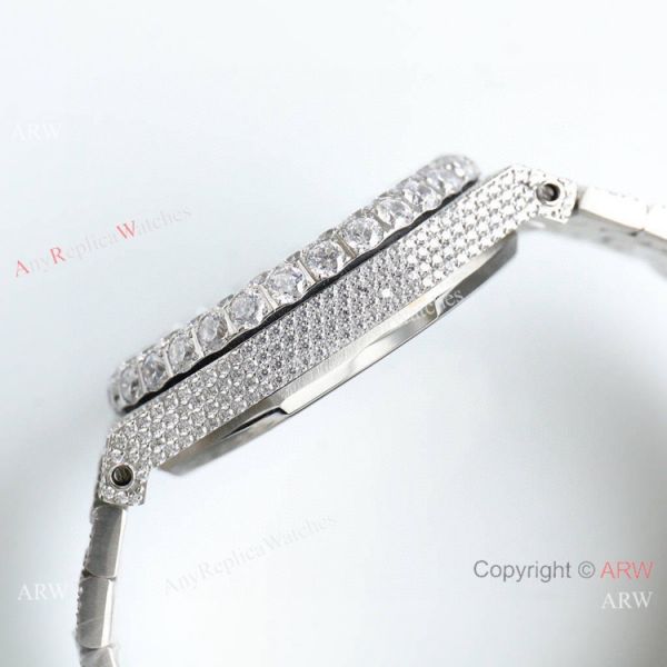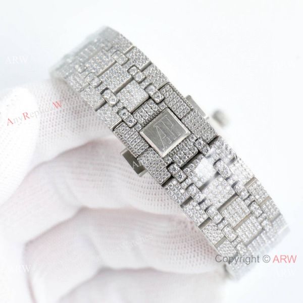 Water resistant case resists water penetration; no swimming or showering recommended with any original or AP Iced Out Watch Replica.
