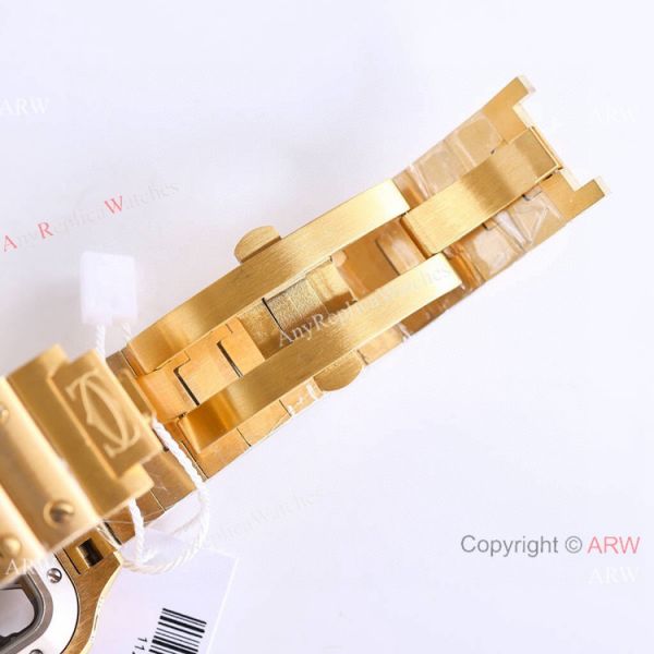Yellow Gold coated 316L Stainless steel Case and Bracelet Skeleton Black Dial Cartier Watch