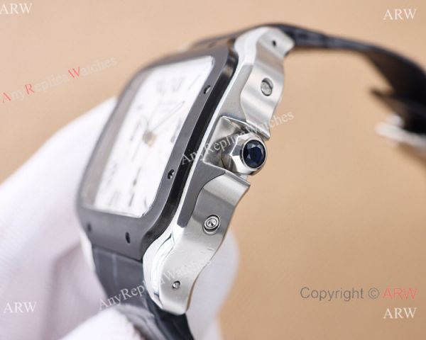 Superclone Santos de Cartier Chronograph watch Black Bezel Silver Case