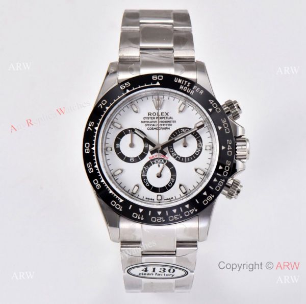 904L Stainless Steel Watch Case and Strap, White Dial with Chromalight, Fixed Tachymeter Scale Bezel, Clean Cal.4130 Daytona Rolex for Men