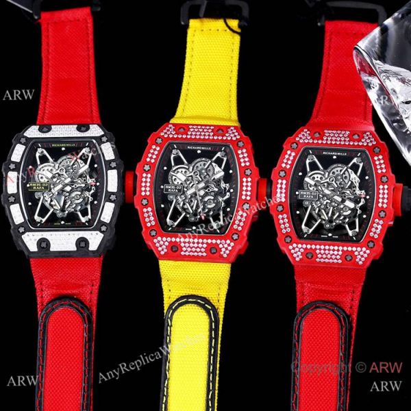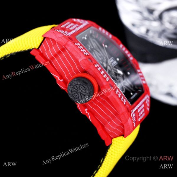 Red Carbon Case Diamond-set Skeleton Dial Yellow Leather Bracelet