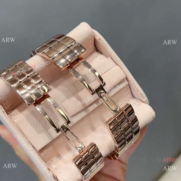 Rose Gold case with Diamonds and White dial. Solid back with detailed engraving.
