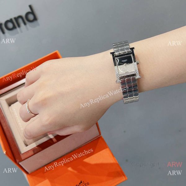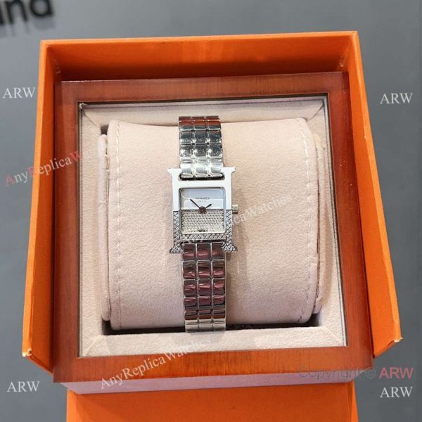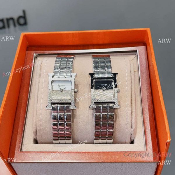 Luxury Hermes Heure H Watch Small 21mm Half Diamond Case