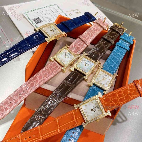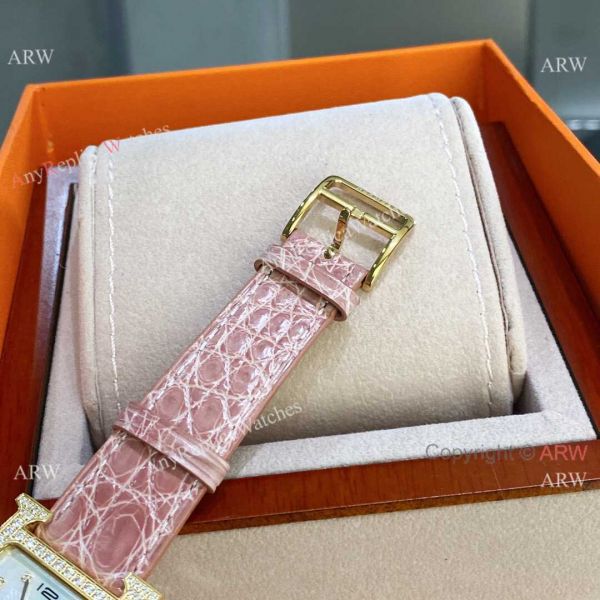 Super AAA Quality Copy Hermes Heure h Quartz watches Gold Diamond Case