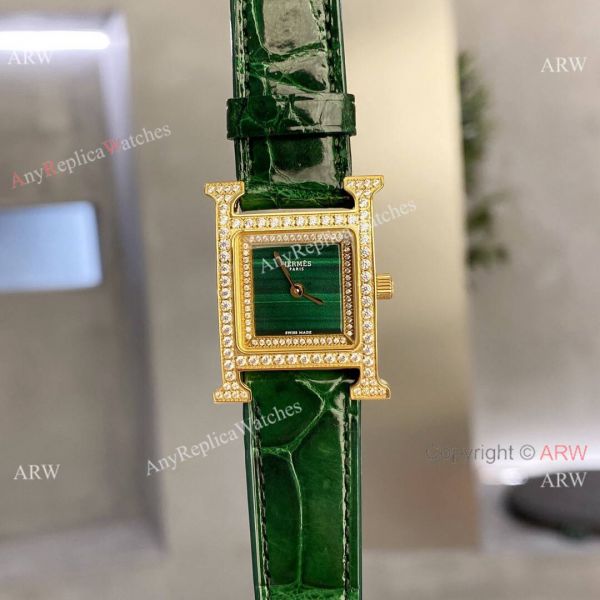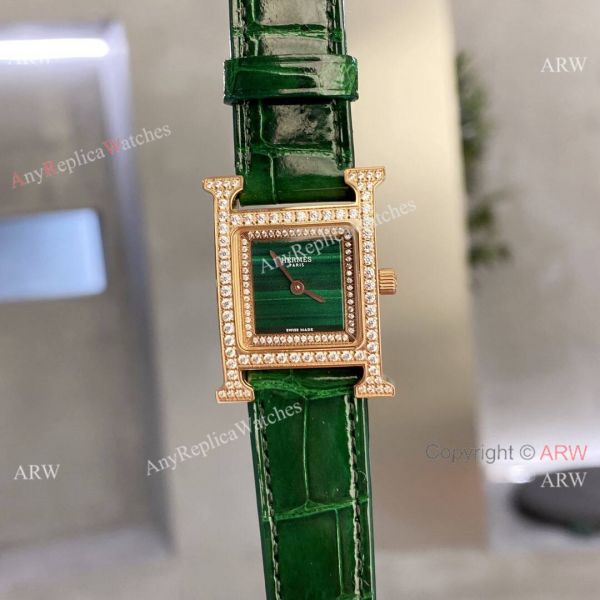 Super AAA Quality Hermes Heure H 21 Malachite Green Double Diamond-set Watches