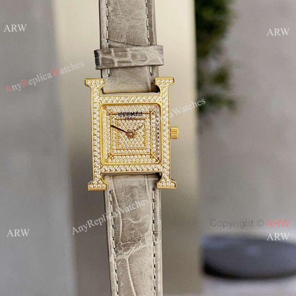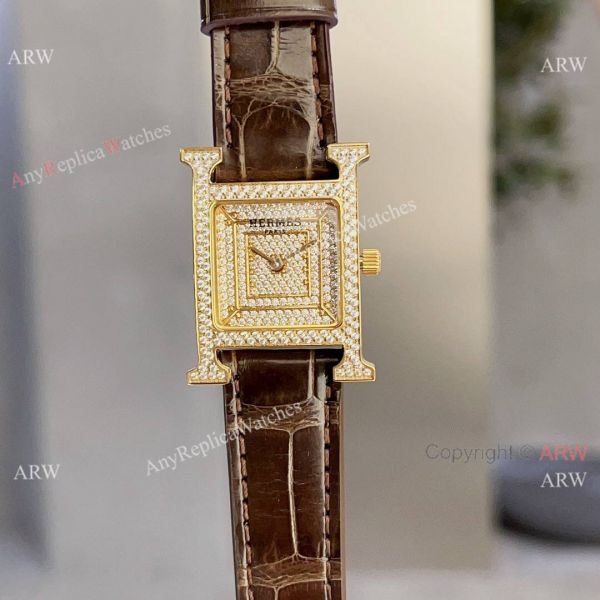 Copy Hermes Cape Cod 23 mm watches Gold with Diamonds |