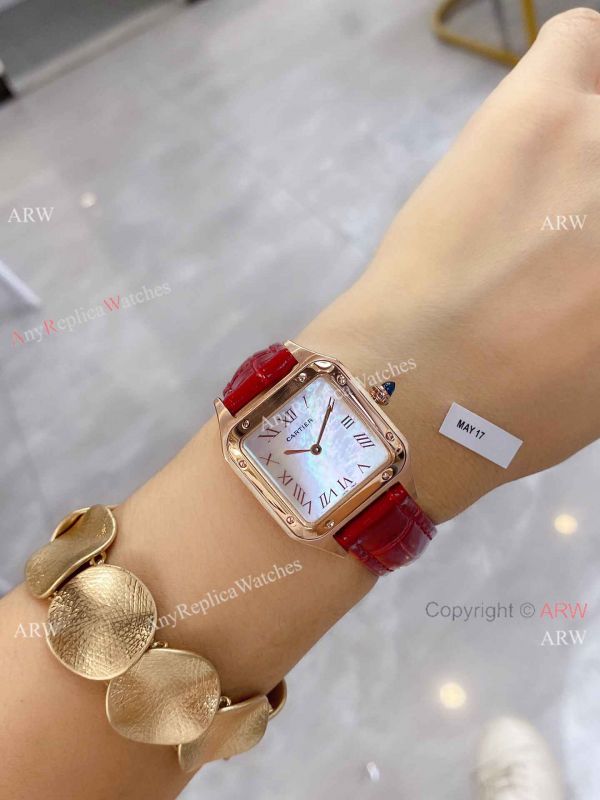 316L Stainless steel Case coated Rose Gold Mother Of Pearl (MOP) Dial Red Leather Strap Cartier Women Watch