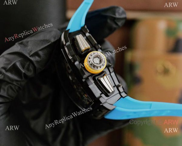 Carbon Case Skeleton Dial Sky Blue Rubber Bracelet