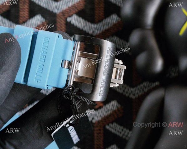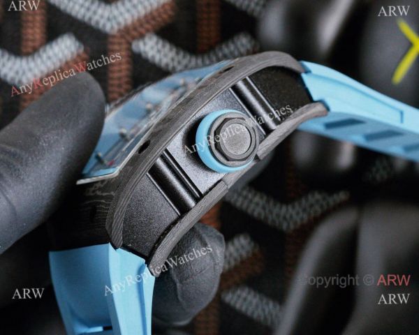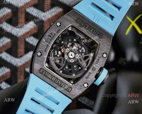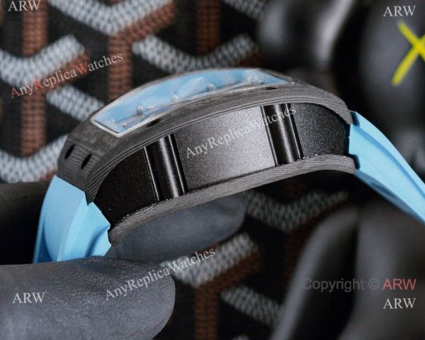 Carbon Case Skeleton Dial Sky Blue Rubber Bracelet