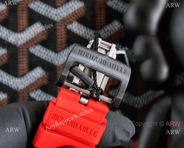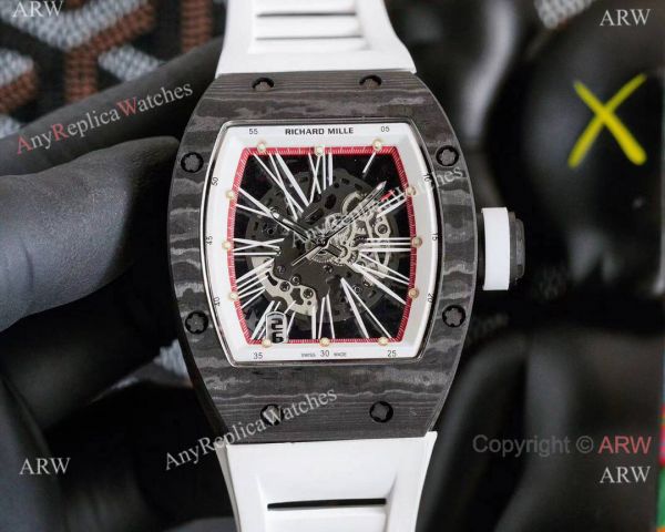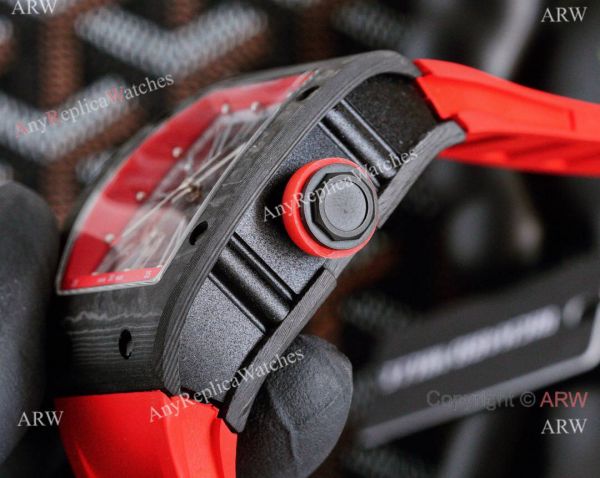 Carbon Case Skeleton Dial Red Rubber Bracelet