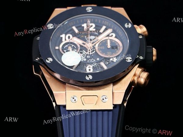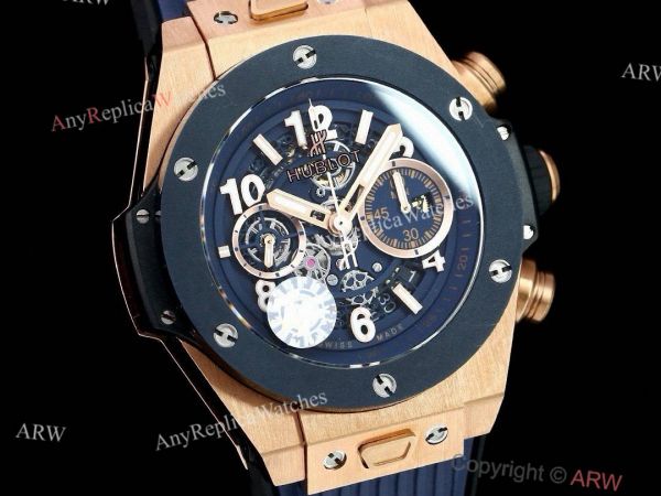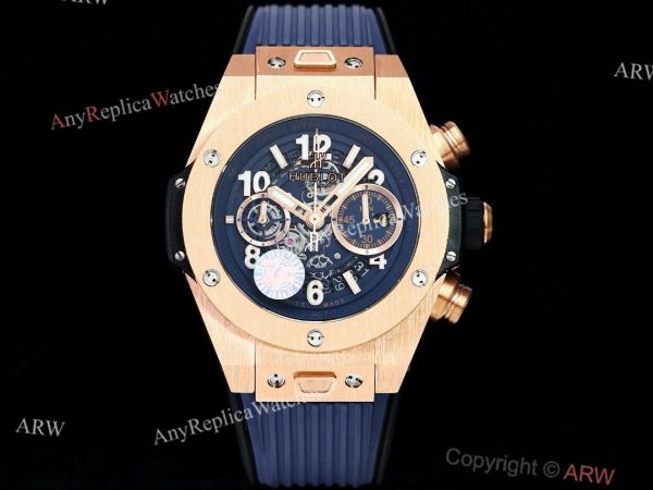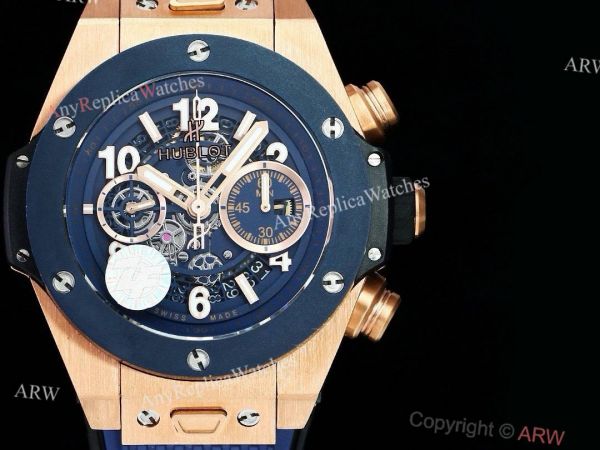 Swiss AAA Hublot Big Bang Chronograph Blue Dial Rose Gold Case Blue Dial Super Clone