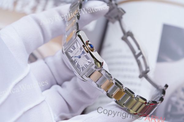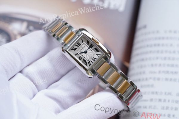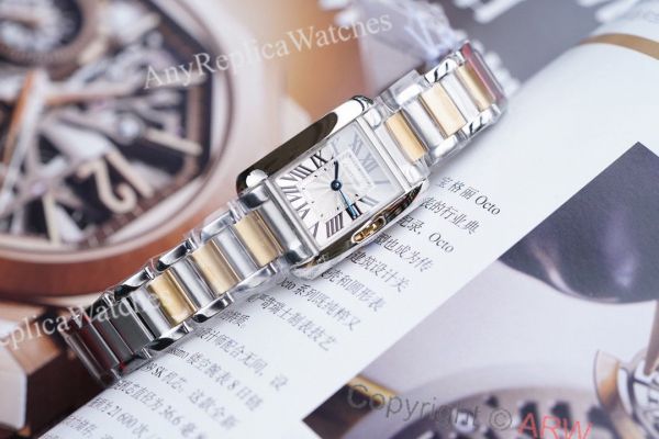 Super Clone Cartier Tank Anglaise Replica Watch Two Tone Yellow Gold Silver Roman Face Lady Watch