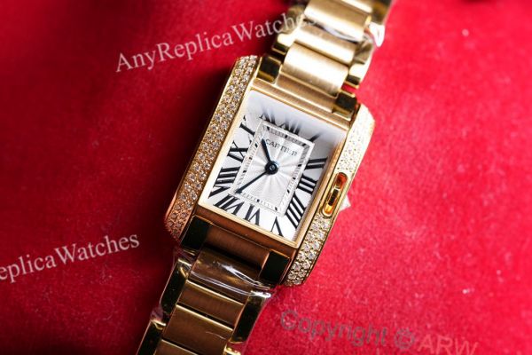 We guarantee this is the highest quality Swiss Replica Cartier Tank Anglaise Yellow Gold Diamond Bezel Watch you can find. You will receive the exact same watch as shown.