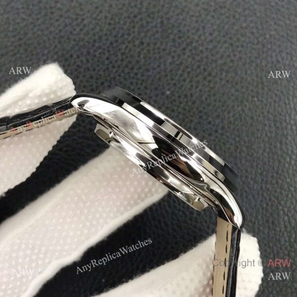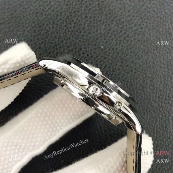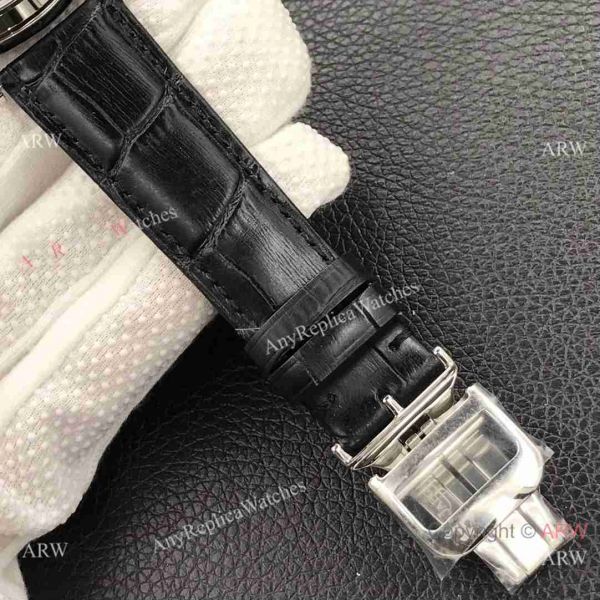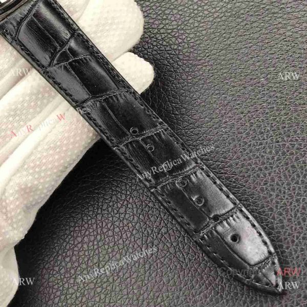 Watch band: Black Leather Bracelet with Jaeger-LeCoultre Logo on Buckle