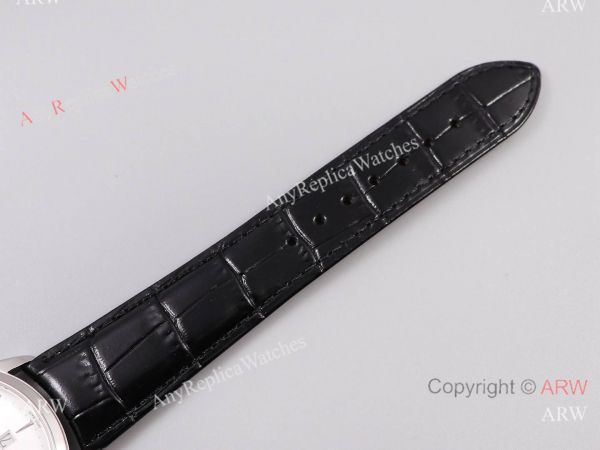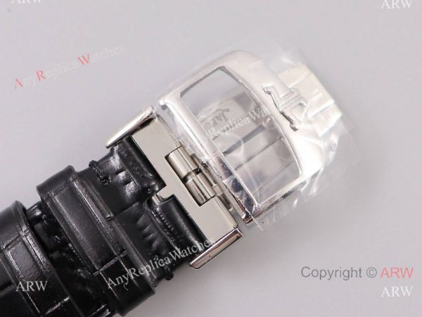 Watch band: Black Leather Bracelet with Jaeger-LeCoultre Logo on Buckle