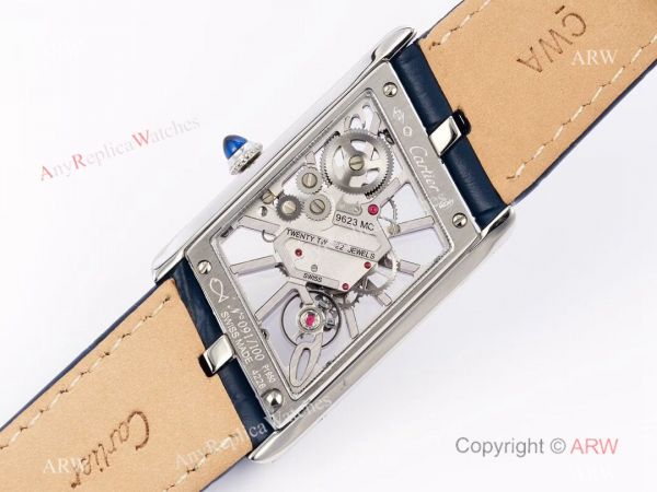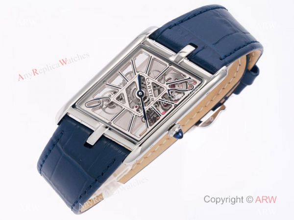 Swiss Replica Cartier new Tank Skeleton Watch Men Blue Leather Strap