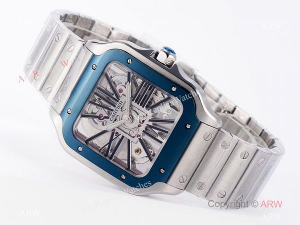 TW Factory Cartier Santos Skeleton 39.8mm Blue PVD Bezel Stainless Steel Watches