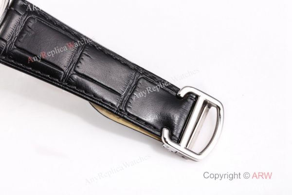 Watch band: Black Leather Bracelet with Cartier Logo on Buckle