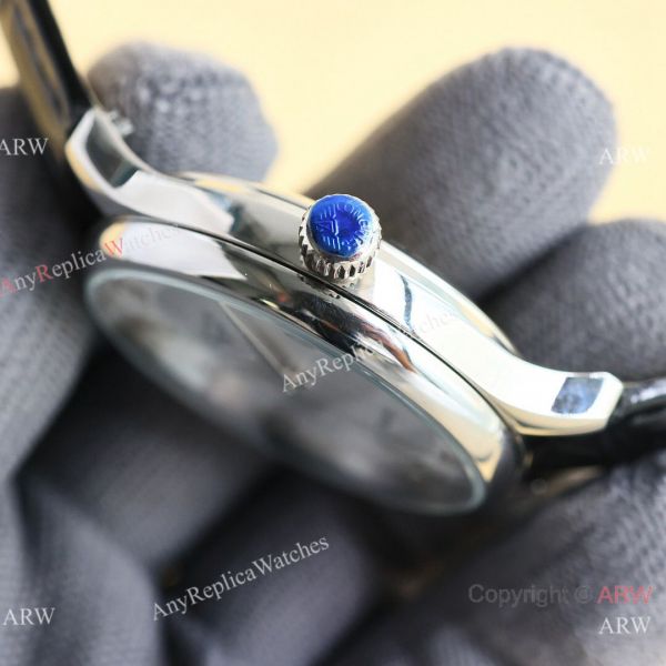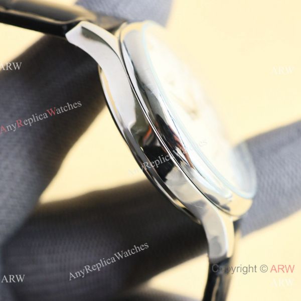 316L Stainless Steel Watch Case White Face and Black Leather Strap Replica Watch