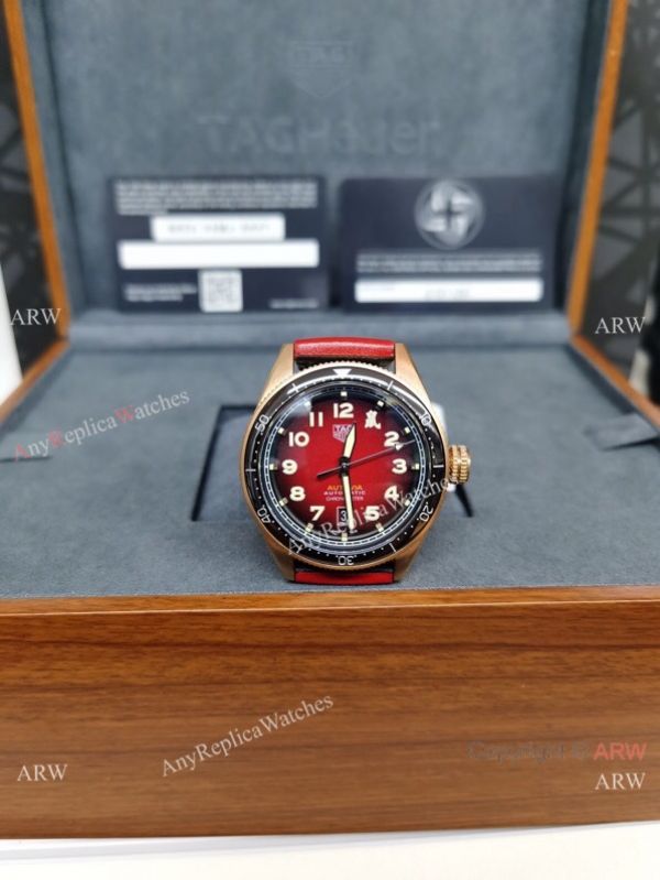 Watchband: High Quality Red Leather watch bracelet. Pin Buckle with Proper TAG Heuer Engraving.