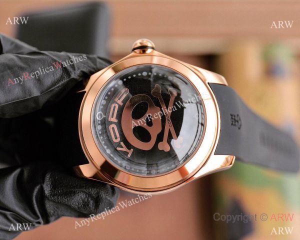 Rose Gold plated Stainless Steel 316L Case Skull Dial Rubber Strap Watch