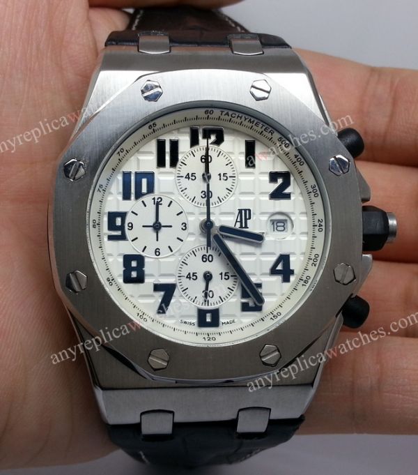 Cheap Audemars Piguet Replica Watches - AP Royal Oak Offshore White Face Black Leather Strap 44mm