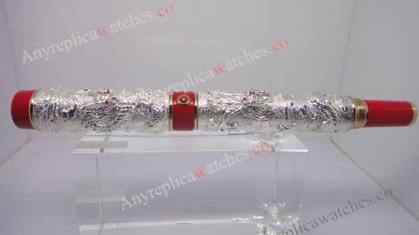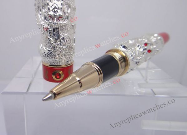 Rollerball Pen Dragon / Loong & Phoenix Silver with Red with Original Wooden Box