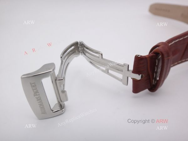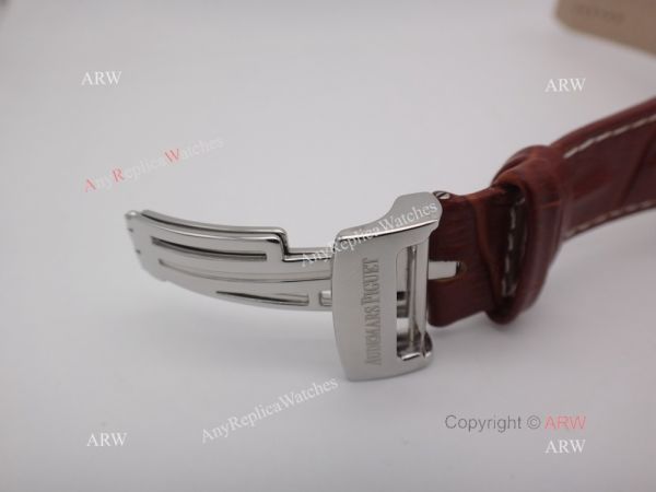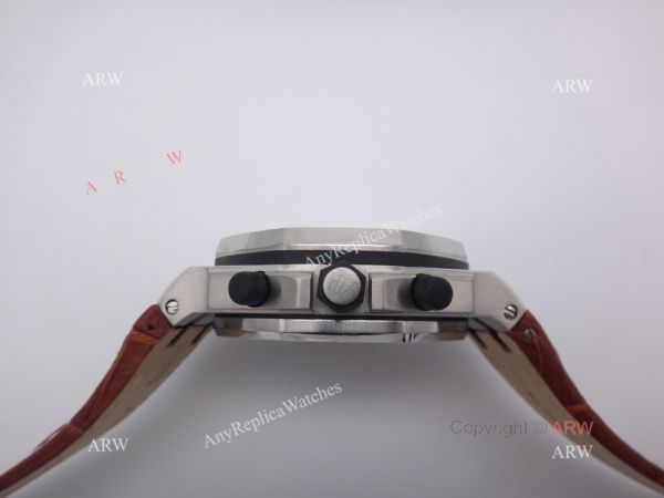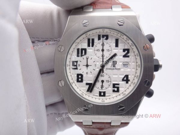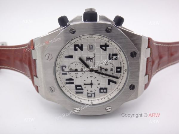 Cheap Audemars Piguet Replica Watches - Royal Oak SS White Chronograph Brown Leather Band