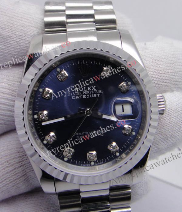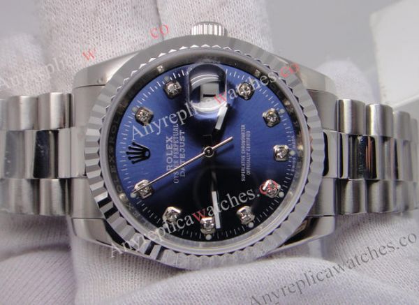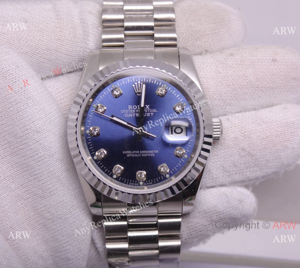 Rolex Datejust Stainless Steel Daimond Markers Blue Face Replica Watch