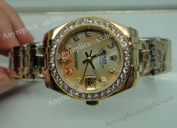 Rolex Yellow Gold Dial With Diamond Markers Replica Rolex Diamond Bezel