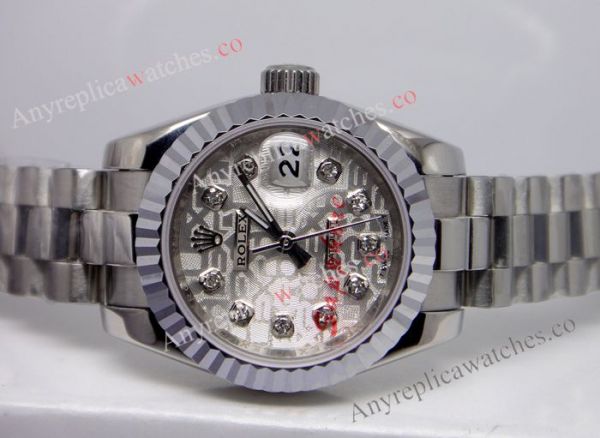 Elegant Replica Rolex Datejust Silver Computer Face Diamond Markers
